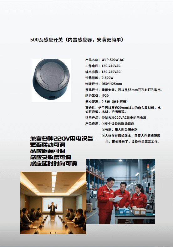 注:产品实际安装需根据灯带功率匹配,感应距离可通过内置电位器调节,建议由专业电工安装。